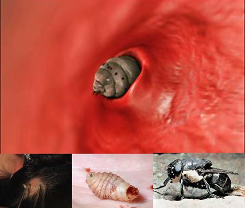 Điều trị: cách thông thường là lấy ấu trùng ký sinh ra khỏi vật chủ bằng giải phẫu hoặc đơn giản là nặn chỗ vết thương để đẩy ấu trùng ra.